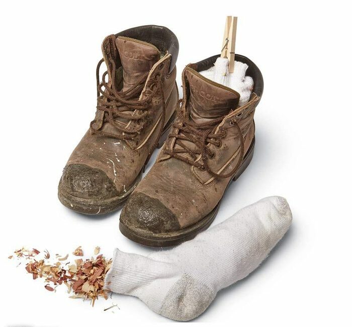 Après une longue journée, remplissez vos chaussures de travail avec des copeaux de cèdre. Le cèdre absorbe l’humidité et élimine les mauvaises odeurs. Vous trouverez des sacs de copeaux en animalerie, où ils sont vendus comme litière. Pour que ce soit plus pratique, vous pouvez remplir une vieille chaussette avec les copeaux et la glisser dans vos chaussures. Pensez à les remplacer environ tous les mois.