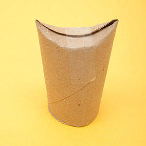 Faites deux plis dans l’extrémité haute du rouleau de papier toilette pour faire les oreilles. Fixez-les avec de l’adhésif.