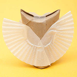 Pliez 2 caissettes à gâteaux en deux et collez-les au dos du rouleau pour faire les ailes.
