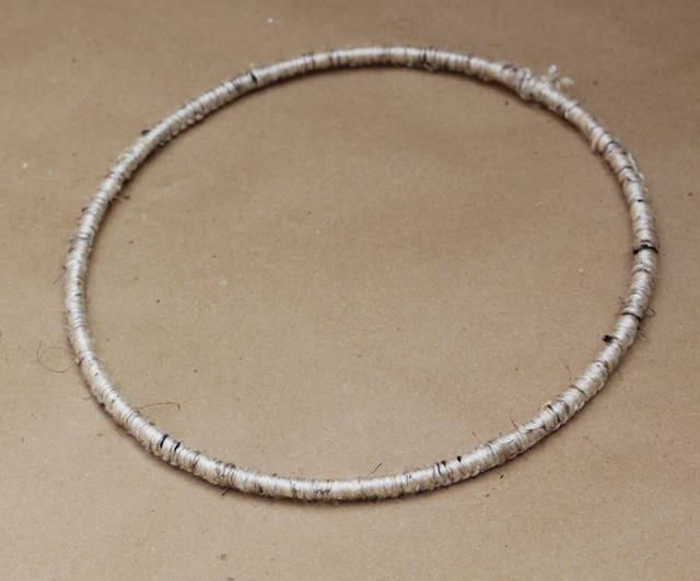 Commencez par enrouler la laine autour du cerceau. Nouez le fil au début et à la fin de cet étape.