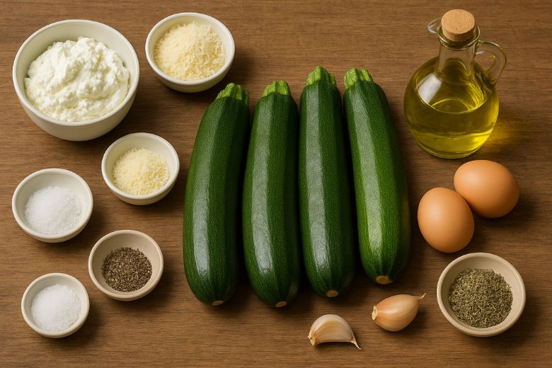 Préchauffez le four à 180°C. Disposez les tranches de courgettes dans un plat à gratin beurré. Recouvrez avec l’appareil à la ricotta et terminez par le gruyère râpé.