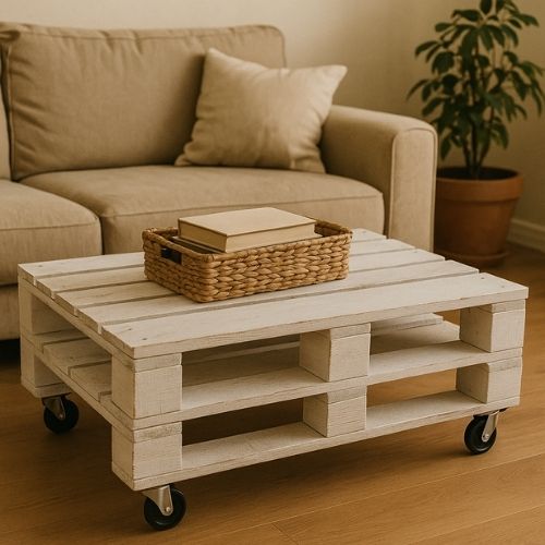 Les palettes en bois sont extrêmement polyvalentes et peuvent être transformées en de nombreux meubles. Une table basse est un excellent point de départ. Ajoutez des roulettes pour pouvoir la déplacer facilement, et peignez-la dans la couleur de votre choix.