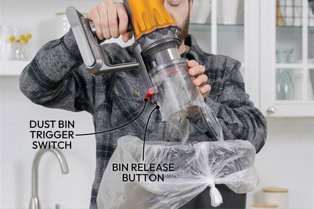 Ouvrez le collecteur de poussière au-dessus d’une poubelle. Sur la plupart des modèles sans fil, il suffit d’appuyer sur le bouton de déverrouillage rouge près de la poignée. Tapotez doucement le collecteur contre le bord de la poubelle pour faire tomber les résidus tenaces.