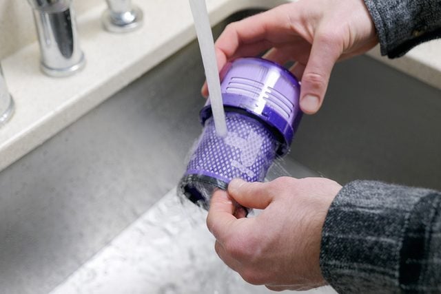 Dyson recommande de nettoyer le filtre une fois par mois. Si vous aspirez beaucoup de poussière fine (plâtre, farine, etc.), faites-le plus souvent.