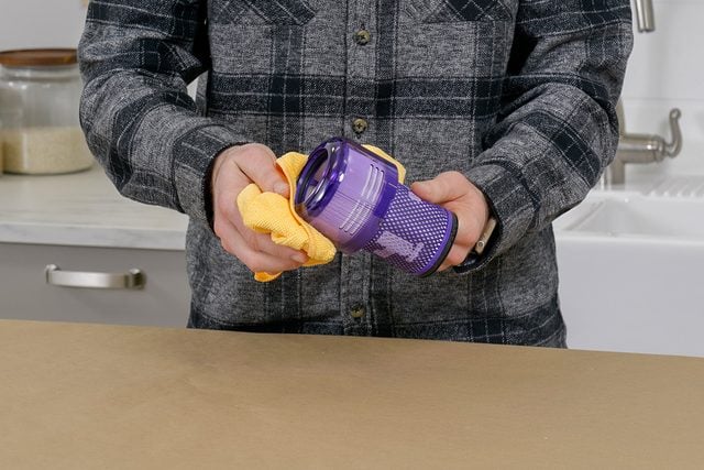 Terminez en nettoyant toute la coque de l’aspirateur avec un chiffon microfibre humide, puis séchez-la.
